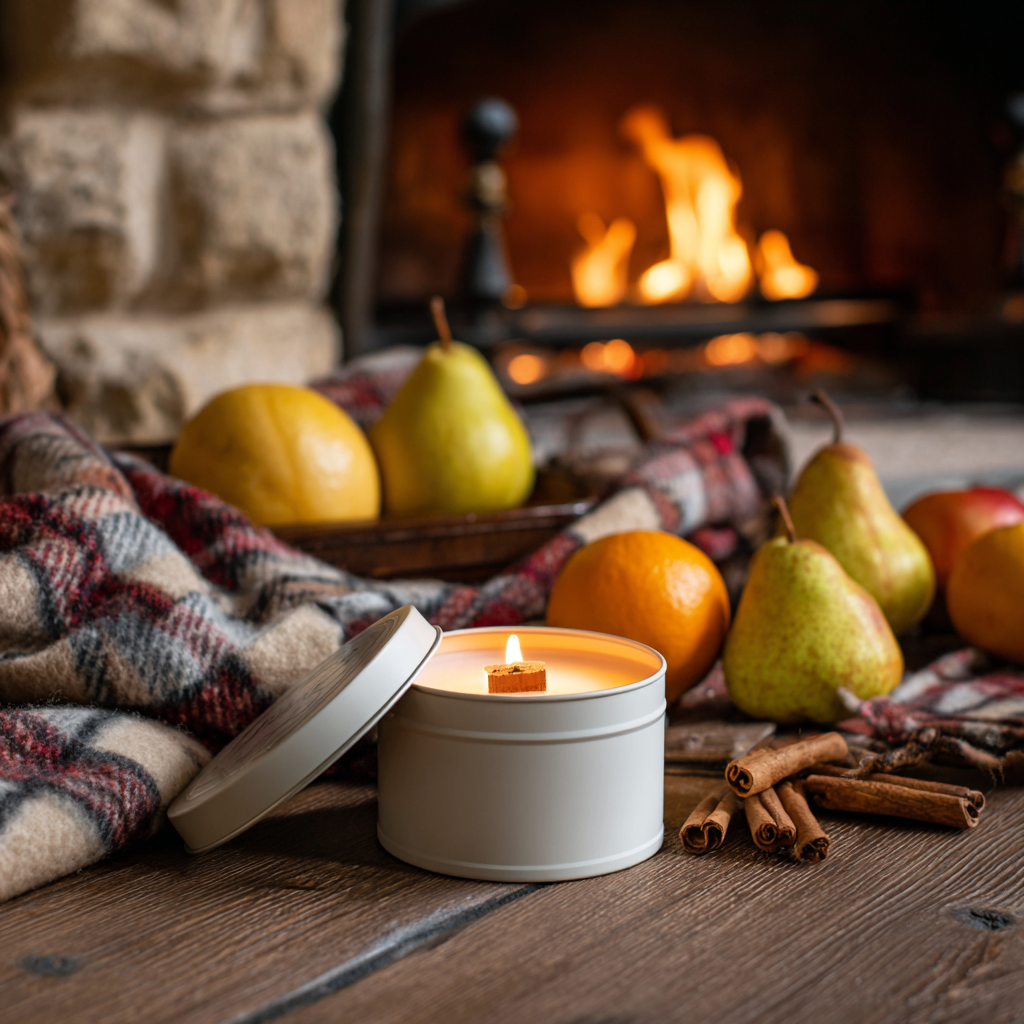 Wrap yourself in the cozy charm of HEARTHSIDE GLOW, where bright apple, juicy pear, and zesty orange lift your spirits with a fruity burst. Warm cinnamon, clove, and nutmeg add a spicy twist, while vanilla, musk, and amber create a snug, inviting finish. Perfect for turning any space into your happy place.