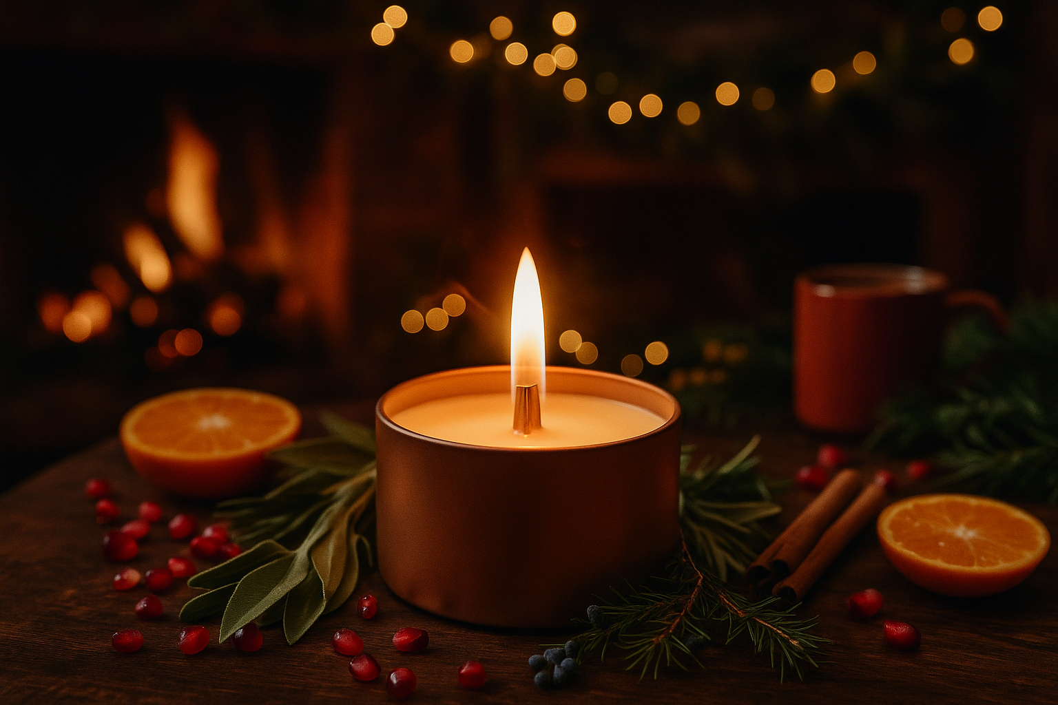 Capture the cozy spirit of the holidays with YULTIDE EMBER. This playful scent bursts with sweet mandarin and zesty pomegranate, mingling with fresh sage and juicy apple at its heart. Warm base notes of vanilla, cinnamon, and amber wrap you in a festive hug, perfect for gathering around the fire with loved ones and making merry memories.